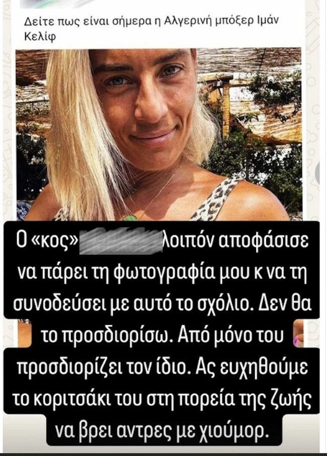 Συγκεκριμένα ο άντρας αυτός δημοσίευσε τη φωτογραφία στο προσωπικό του προφίλ στο Facebook και έγραψε ως λεζάντα: “Δείτε πως είναι σήμερα η Αλγερινή μποξέρ, Ιμάν Κελίφ”.