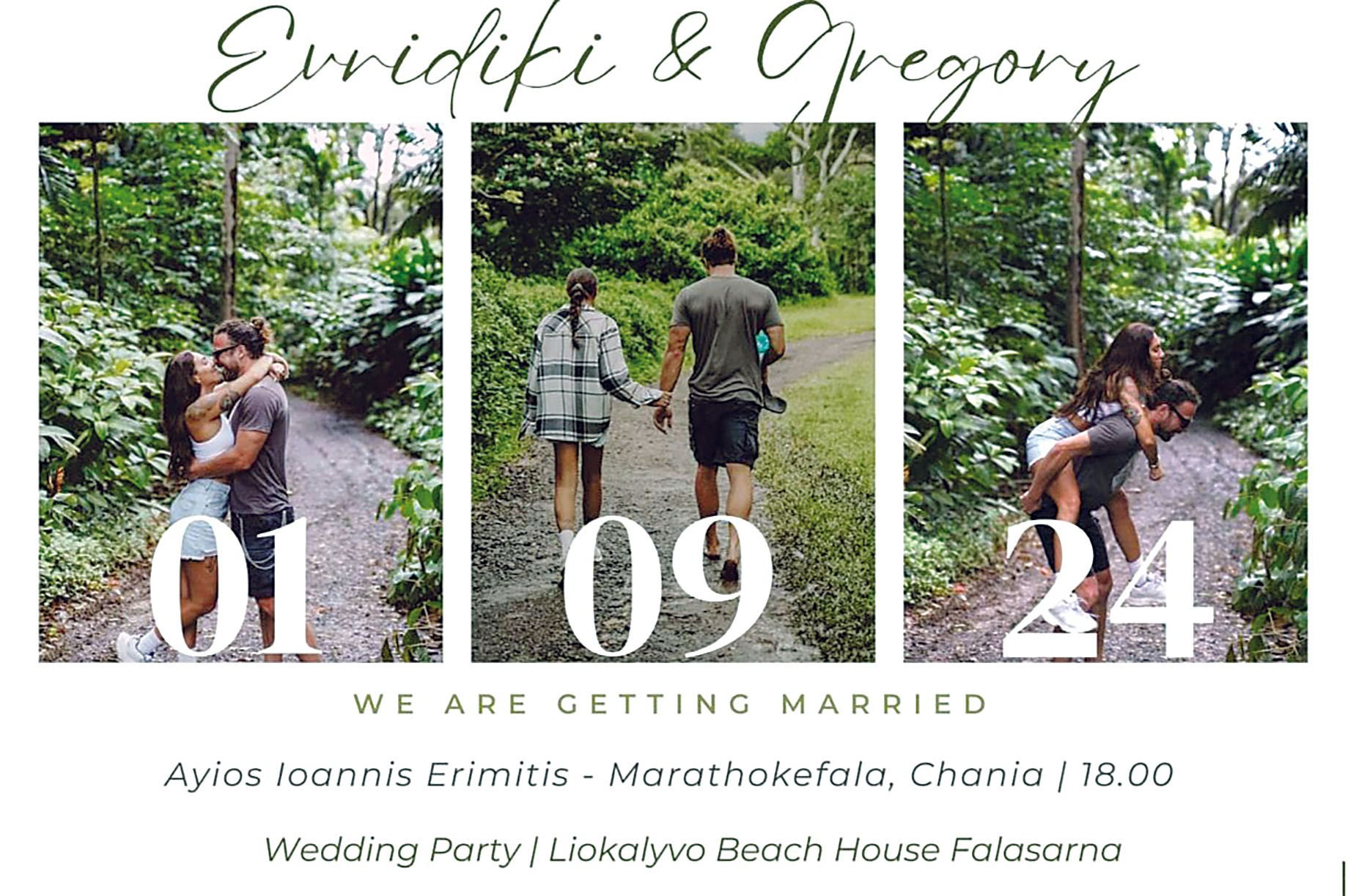 Οπως διαβάζουμε στο προσκλητήριο, ο γάμος θα πραγματοποιηθεί στον Άγιο Ιωάννη τον Ερημίτη, στη Μαραθοκεφάλα στα Χανιά στις 6 το απόγευμα, ενώ μετά το μυστήριο θα ακολουθήσει ξέφρενο πάρτι στο στα Φαλάσαρνα.