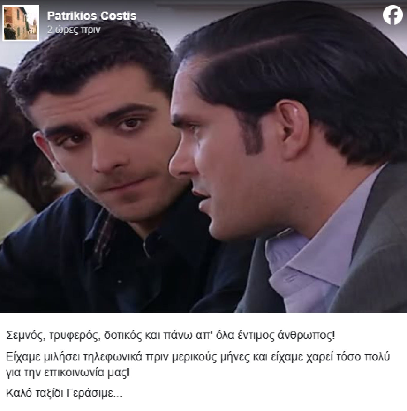 Ανάμεσα στους ηθοποιούς ήταν και ο Πατρίκιος Κωστής. Οι δύο άντρες είχαν δουλέψει στο «Πάρα Πέντε». Ο Πατρίκιος Κωστής έκανε λόγο για έναν σεμνό, τρυφερό, δοτικό και έντιμο άνθρωπο, ενώ αποκάλυψε ότι είχαν επικοινωνήσει τηλεφωνικά πριν από μερικούς μήνες. Τη δημοσίευσή του στα social media συνόδευσε με ένα κοινό τους στιγμιότυπο από τη δημοφιλή σειρά. «Σεμνός, τρυφερός, δοτικός και πάνω απ’ όλα έντιμος άνθρωπος. Είχαμε μιλήσει τηλεφωνικά πριν μερικούς μήνες και είχαμε χαρεί τόσο πολύ για την επικοινωνία μας. Καλό ταξίδι Γεράσιμε…», έγραψε ο Πατρίκιος Κωστής.
