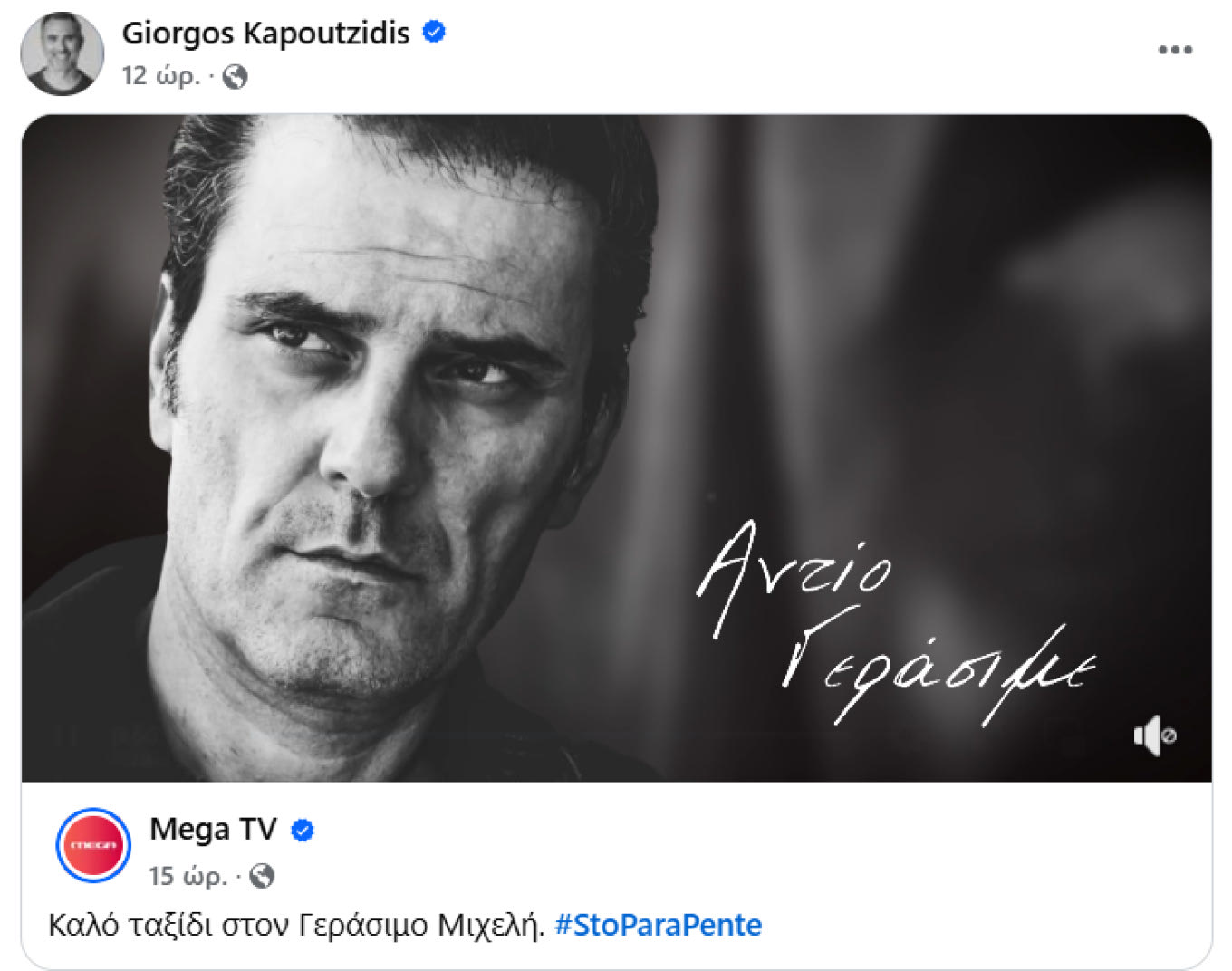 Το δικό του «αντίο» είπε και ο Γιώργος Καπουτζίδης, καθώς αναδημοσίευσε στον προσωπικό του λογαριασμό στο Facebook, μία ανάρτηση από τη σελίδα του Mega που έγραφε: «Αντίο Γεράσιμε».
