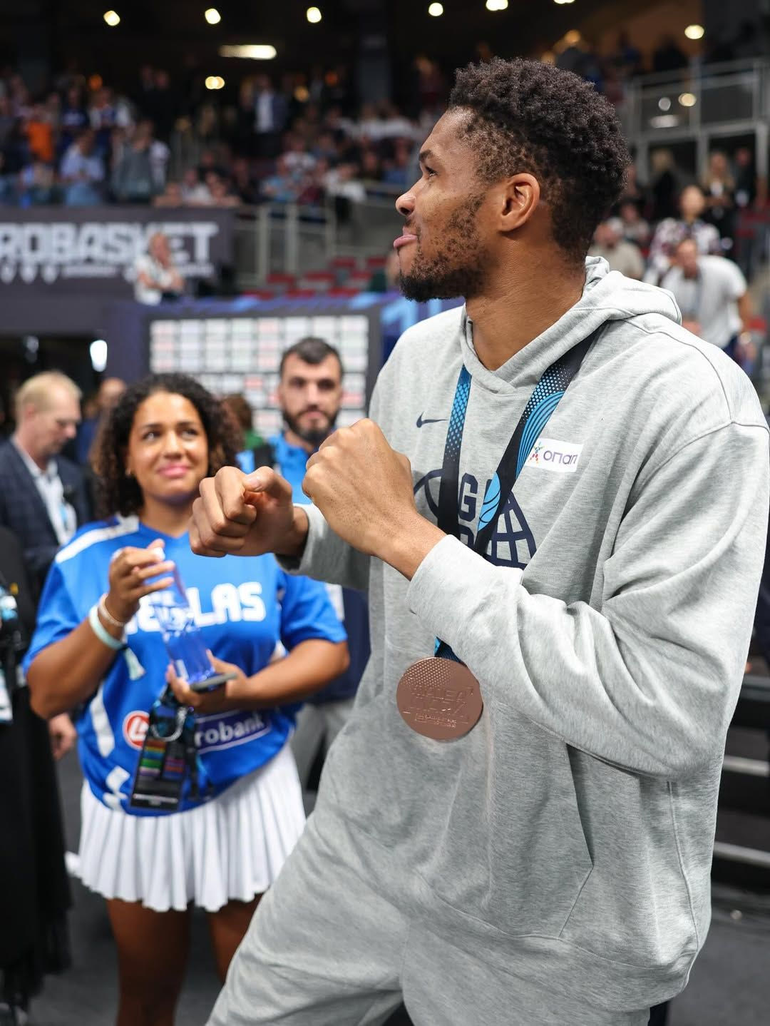 Η στιγμή κορυφώθηκε όταν ο Γιάννης αγκάλιασε τους συμπαίκτες του και στη συνέχεια πανηγύρισε στο κέντρο του γηπέδου με την οικογένειά του. Εκεί, η προσωπική χαρά ενώθηκε με την εθνική συγκίνηση: η μικρή του κόρη Eva γιόρταζε τα δεύτερα γενέθλιά της, χαρίζοντας στον σταρ του NBA έναν επιπλέον λόγο να χαμογελά.