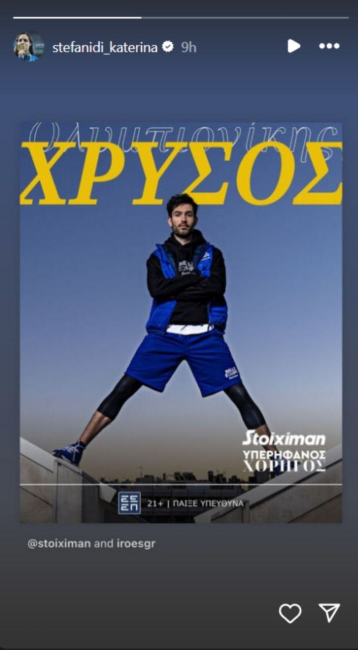 Ο ασύλληπτος Τεντόγλου αποθεώθηκε από όλους για ακόμα μία φορά. Η Κατερίνα Στεφανίδη τον συνεχάρη για την κατάκτηση του χρυσού μεταλλίου, μέσω ενός στόρι στο Instagram.