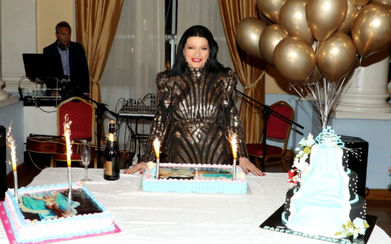 Ντυμένη με μια χρυσή τουαλέτα, η τραγουδίστρια και ηθοποιός διασκέδασε και φωτογραφήθηκε με τα αγαπημένα της πρόσωπα. Η διακόσμηση στον χώρο αποτελούταν από χρυσά μπαλόνια, ενώ οι δύο τούρτες που της είχαν ετοιμάσει, ήταν εμπνευσμένες από μία εμβληματική της εμφάνιση στον ελληνικό κινηματογράφο.