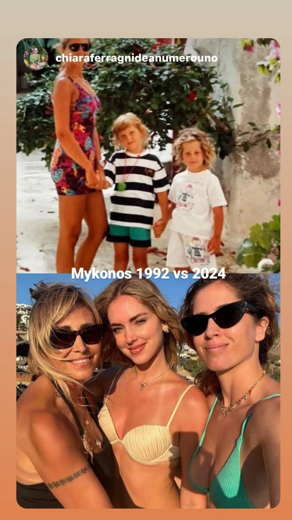 Η φωτογραφία είναι από το 1992 και οι τρεις γυναίκες ποζάρουν δίπλα σε έναν από τους ανεμόμυλους της Μυκόνου. «32 χρόνια μετά, ίδιο σημείο, ίδια αγάπη. Είστε ο ασφαλής παράδεισος μου», έγραψε η Κιάρα Φεράνι.