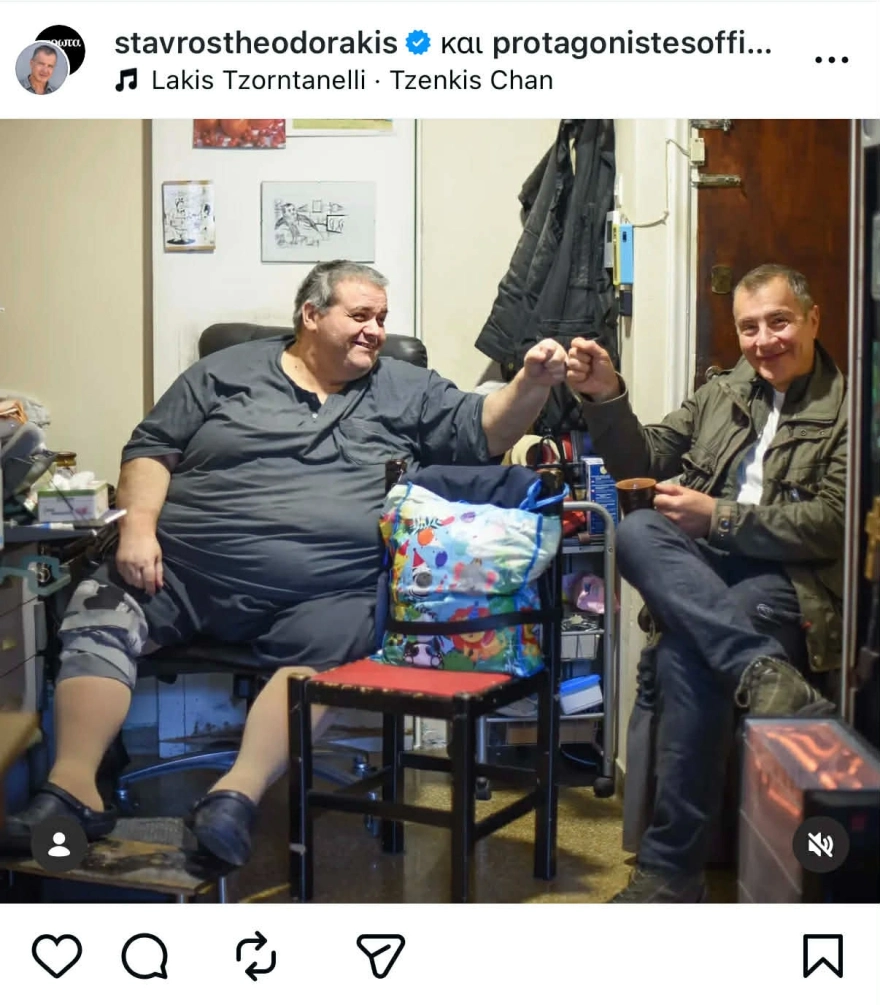Ο παρουσιαστής, συγκεκριμένα, έγραψε: «Ο Κώστας Μακέδος πρωταγωνιστούσε – και σκορπούσε γέλιο – στην εποχή της βιντεοκασέτας. Στο πλευρό του Μουστάκα, του Φωτόπουλου, του Κωνσταντίνου και άλλων. Εξού και η μουσική επένδυση της ανάρτησης. Εδώ και μήνες, όμως, είναι καθηλωμένος σε μια καρέκλα. Σε μια εκπομπή, λοιπόν, για την παχυσαρκία και τα ενέσιμα φάρμακα επιβάλλεται να έχει ξανά τον ρόλο του πρωταγωνιστή» και συνόδευσε τη λεζάντα με μία φωτογραφία από τη συνάντησή τους.
