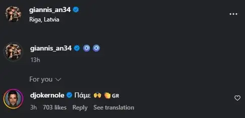 Ο Σέρβος έστειλε το δικό του μήνυμα στον Γιάννη Αντετοκούνμπο σε άπταιστα ελληνικά γράφοντας «Πάμε».