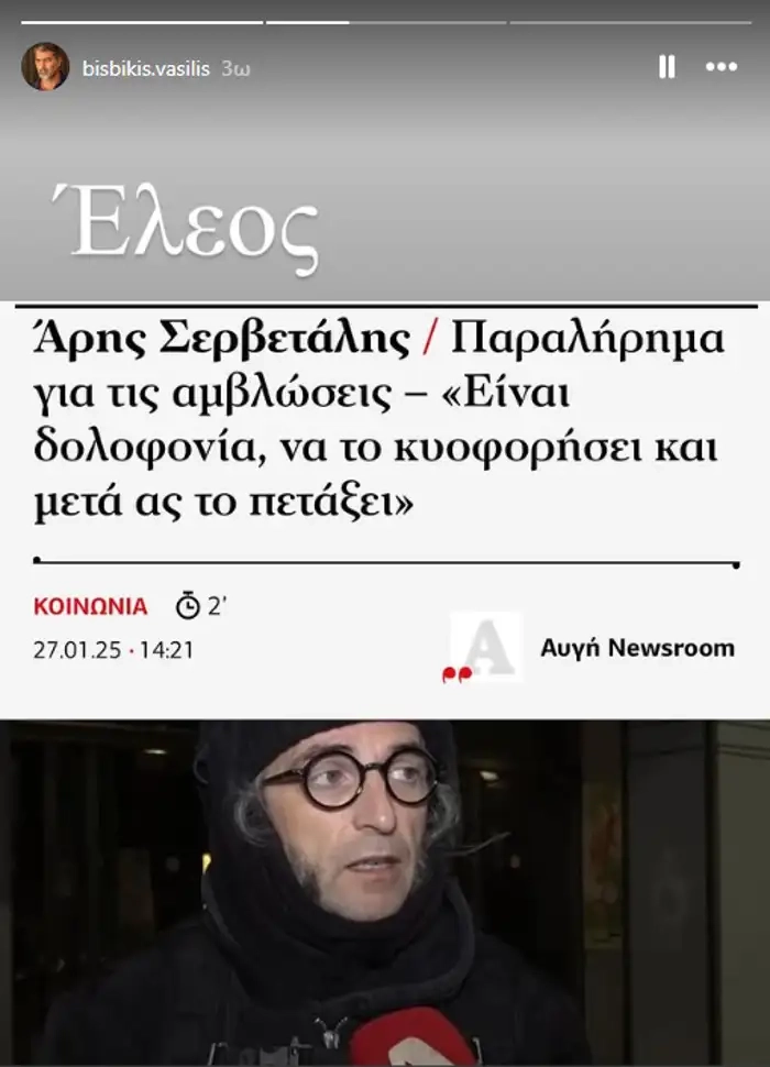Το σχόλιό του θέλησε να κάνει και ο Βασίλης Μπισμπίκης, ο οποίος έκανε μια ανάρτηση στα social media και δεν έκρυψε τον εκνευρισμό του, αναδημοσιεύοντας ένα άρθρο το οποίο συνόδευσε γράφοντας: «Έλεος».