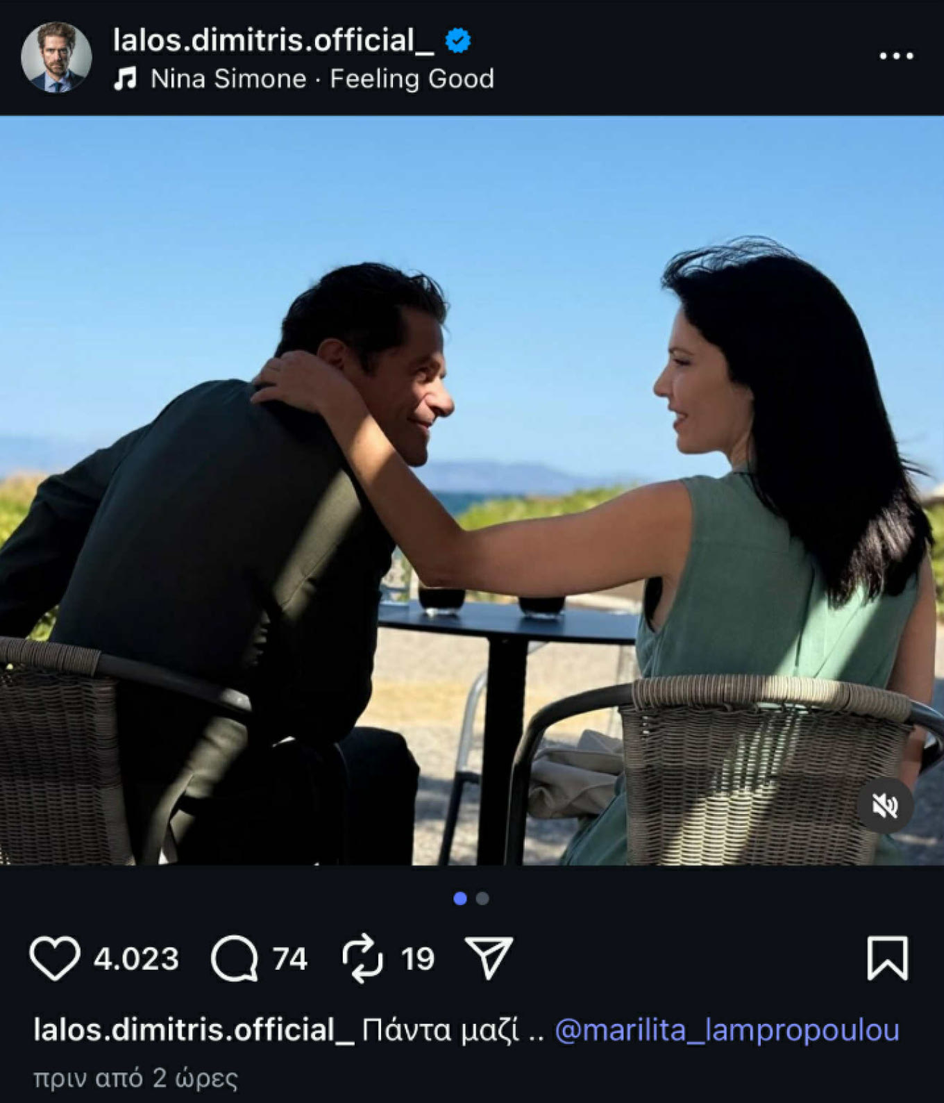 Σε ανάρτηση που έκανε στον προσωπικό του λογαριασμό στο Instagram ο Δημήτρης Λάλος, ανέβασε δύο στιγμιότυπα με τη σύντροφό του και έγραψε στη λεζάντα που τα συνόδευσε: «Πάντα μαζί».