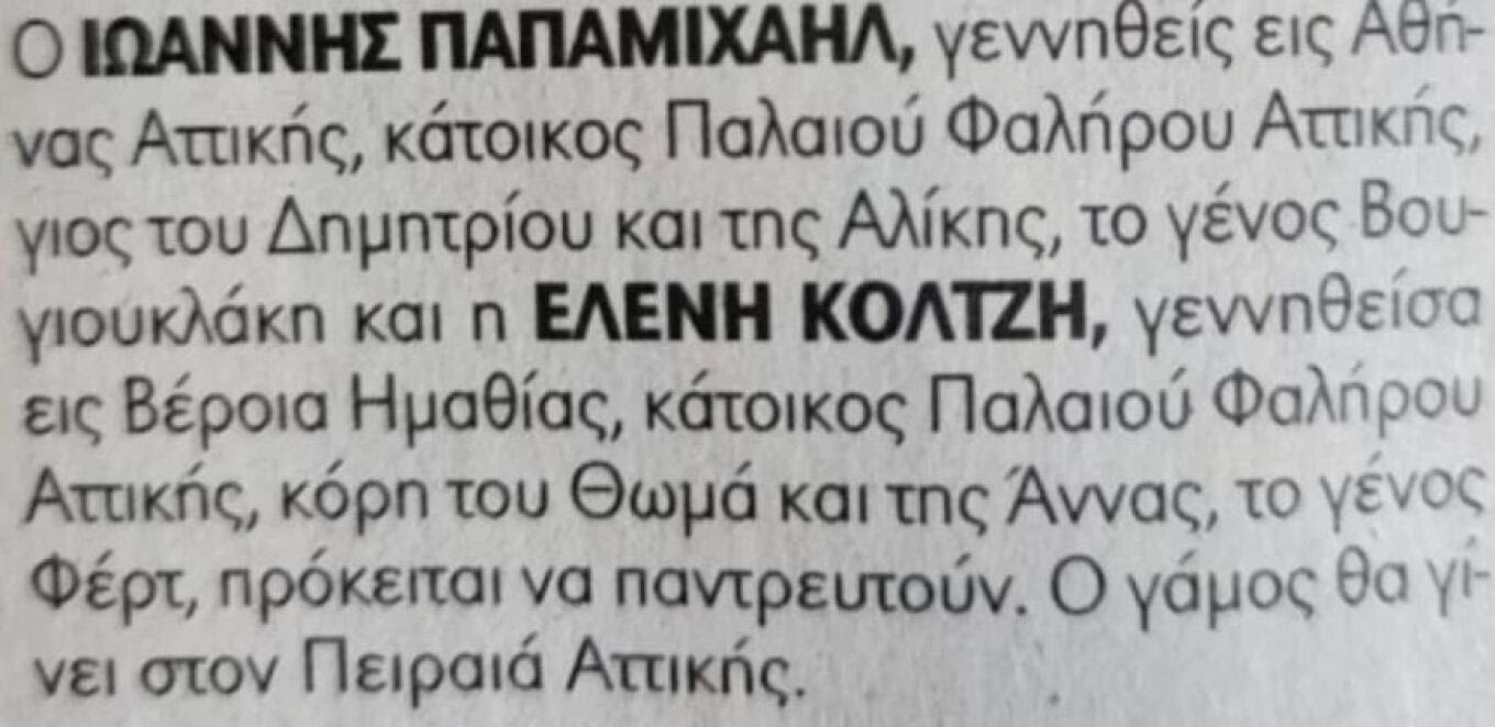 Ο Γιάννης Παπαμιχαήλ και η σύντροφός ετοιμάζονται να παντρευτούν, όπως μαρτυρά η αναγγελία του γάμου τους.