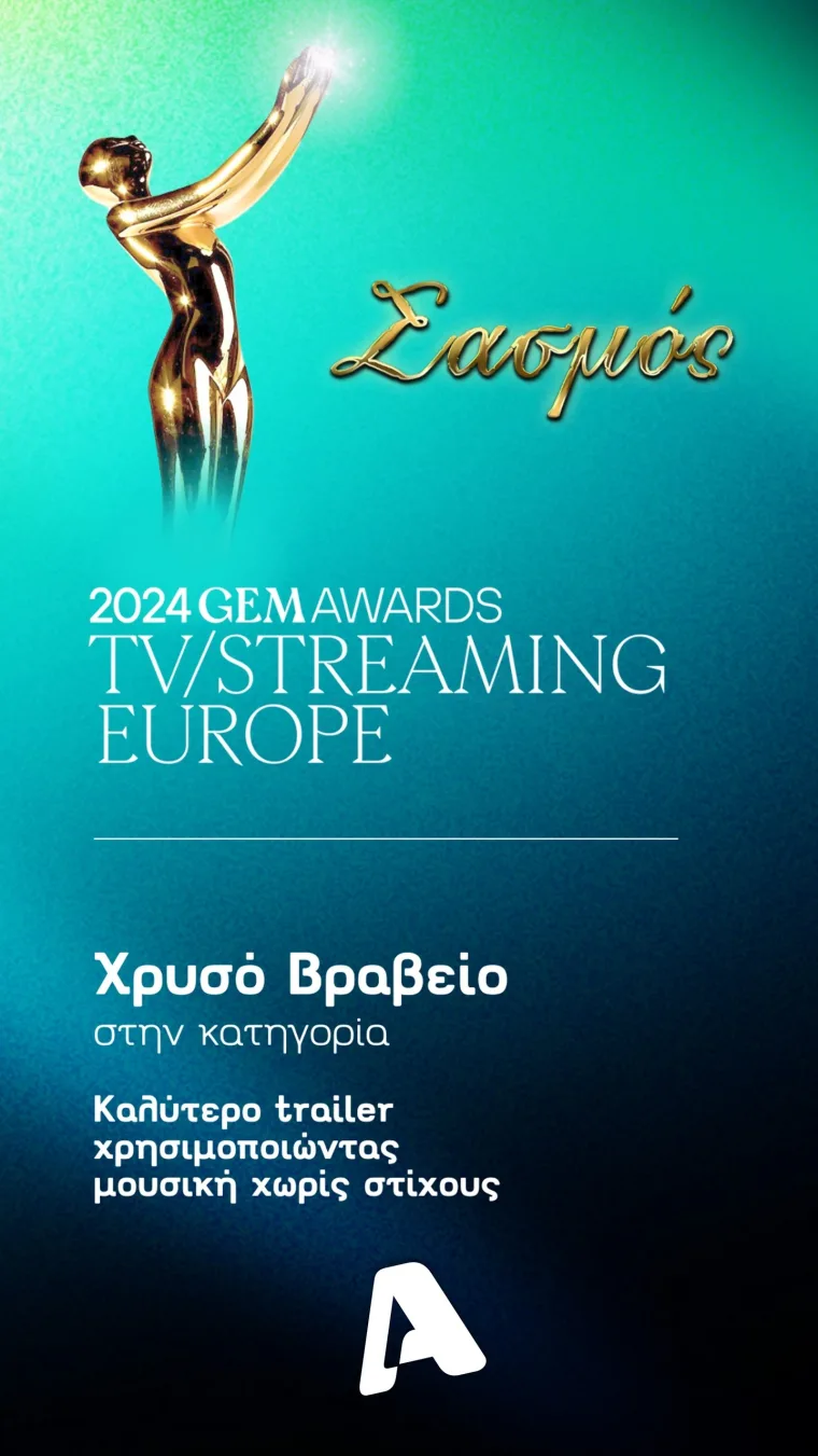 Τα Global Entertainment Marketing Awards αναγνωρίζουν τις πρωτοποριακές καμπάνιες σε παγκόσμιο επίπεδο που «αιχμαλωτίζουν» τους θεατές και διαμορφώνουν το τηλεοπτικό τοπίο. Ο Alpha είναι το ελληνικό κανάλι, το οποίο σταθερά βρίσκεται στους Final 5 των GEMA και μάλιστα φέτος είναι το μοναδικό ελληνικό κανάλι της ελεύθερης τηλεόρασης που έχει καταφέρει και αυτή τη διάκριση καθώς και την κορυφαία αυτή βράβευση, αποδεικνύοντας ακόμη μία φορά ότι ο Alpha είναι το «σπίτι» της καλής Μυθοπλασίας. Το κανάλι το οποίο παρουσιάζει σειρές για όλη την οικογένεια και για όλα τα γούστα, με σεβασμό στο θεατή, σε παραγωγές προσεγμένες, ευρωπαϊκών προδιαγραφών.