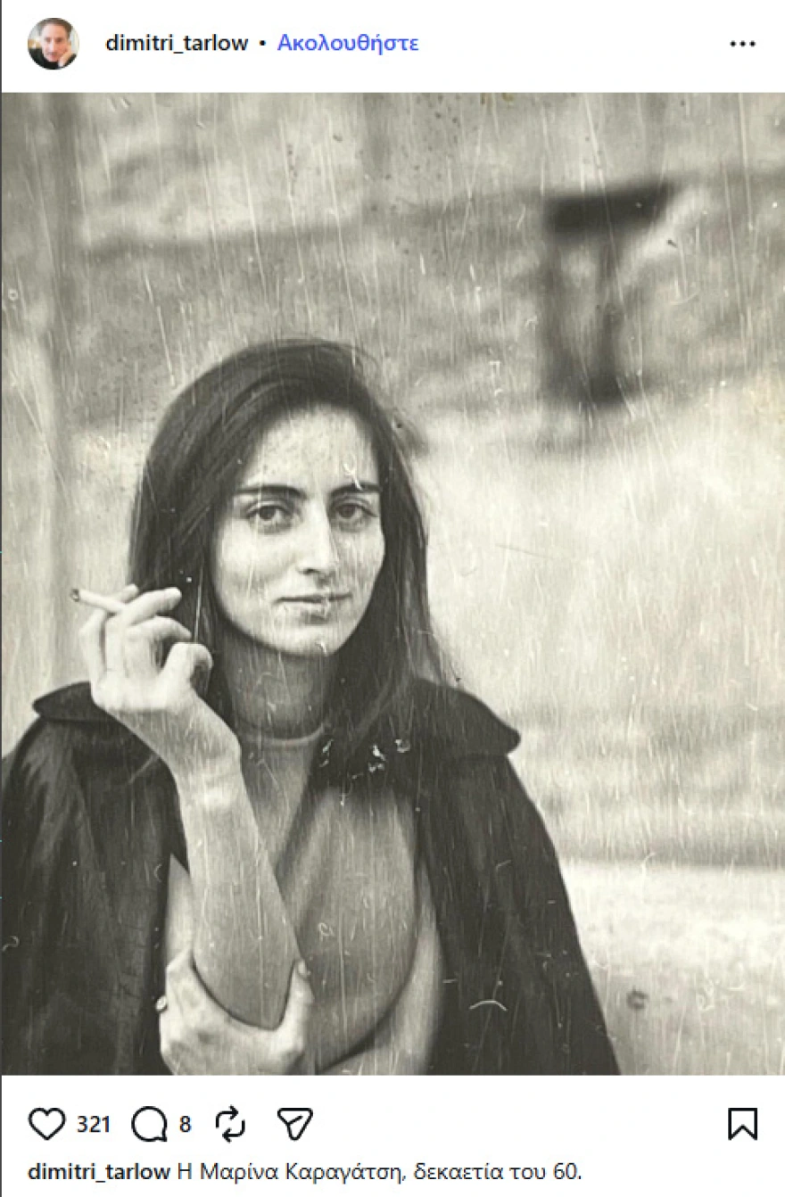 Περιγράφοντας τη σχέση της μητέρας του με τον παππού του, ο Δημήτρη Τάρλοου την έχει χαρακτηρίσει τραυματική. «Θα έλεγα ότι η σχέση της μάνας μου με τον Καραγάτση ήτανε μία τραυματική σχέση, η οποία έληξε απότομα και δεν έδωσε το περιθώριο της επανόρθωσης ή της επούλωσης. Γιατί η μάνα μου ήταν 24 χρονών όταν πέθανε ο Καραγάτσης, ήταν πολύ μικρή. Ο Καραγάτσης πέθανε 52 ετών. Το φαντάζεστε; Δηλαδή με τα σημερινά δεδομένα ένας νέος άνθρωπος», είχε σημειώσει στην εκπομπή της ΕΡΤ.