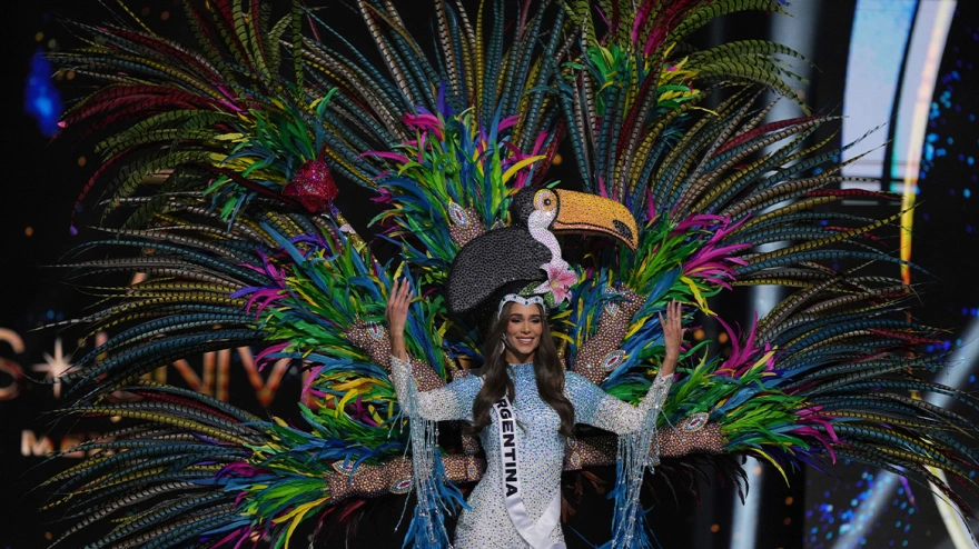 Η Μις Αργεντινή έβαλε στολή εμπνευσμένη από τη ζούγκλα στην οποία πρωταγωνιστεί ένα τουκάν και αντιπροσωπεύει τους καταρράκτες της χώρας.