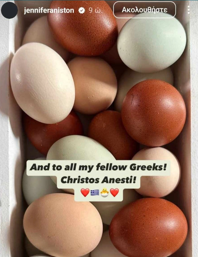 «Χριστός Ανέστη» ευχήθηκε στους Έλληνες και τις Ελληνίδες ακολούθους της με ένα story που ανάρτησε στο Instagram η σταρ του Χόλιγουντ Τζένιφερ Άνιστον.