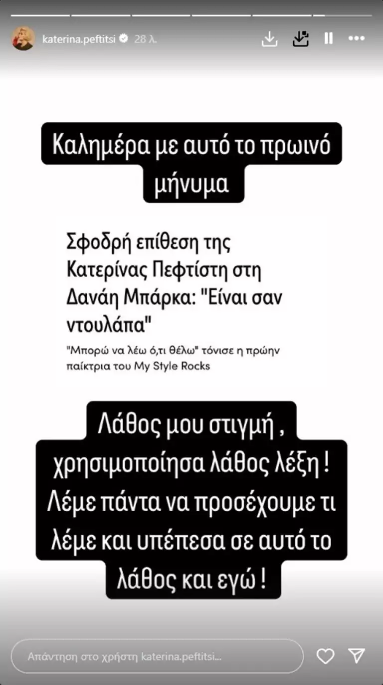 Η Κατερίνα Πεφτίτση απολογήθηκε για τον σκληρό χαρακτηρισμό που έκανε προς την Δανάη Μπάρκα μέσα από ένα βίντεο στο Youtube.