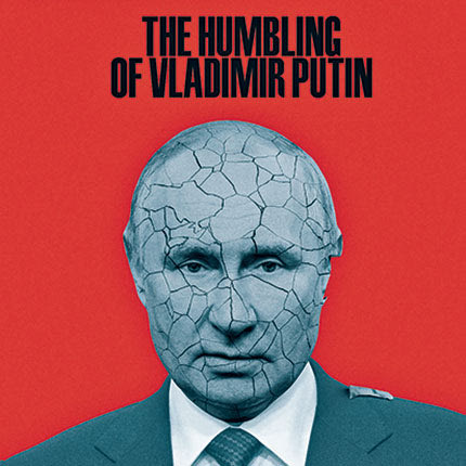 «Η ταπείνωση του Βλαντιμίρ Πούτιν» είναι ο τίτλος του ρεπορτάζ του περιοδικού που φιλοξενεί μία ασπρόμαυρη φωτογραφία του Ρώσου προέδρου γεμάτη ρωγμές. «Ο Βλαντιμίρ Πούτιν μοιάζει με αδέξιο κακοποιό μέσα στην κούφια συμμορία όπως έχει καταντήσει τη Ρωσία.