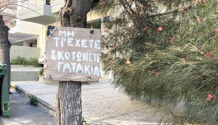 Είναι από τις πινακίδες που δεν μπορεί να περάσει απαρατήρητη. Κυρίως για την αθωότητα και τον τρόπο που φαίνεται να αντιμετωπίζουν τα πράγματα μικρά παιδιά, αφού από αυτά φαίνεται κατασκευασμένη. Ο λόγος για αυτοσχέδια πινακίδα στην οδό Γεννηματά στον Μασταμπά, η οποία προειδοποιεί τους διερχόμενους οδηγούς να κόψουν ταχύτητα, προκειμένου να … σώσουν συμπαθή μωρά τετράποδα.