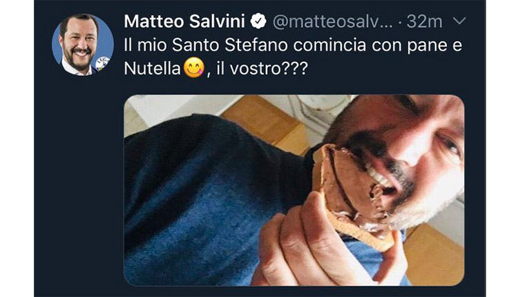 Εντάξει, το τερμάτισε ο επικεφαλής της ιταλικής ξενοφοβικής Λέγκας Ματέο Σαλβίνι, τα έβαλε με την πραλίνα φουντουκιού σε μία εκδήλωση του κόμματός του στη Ραβένα.