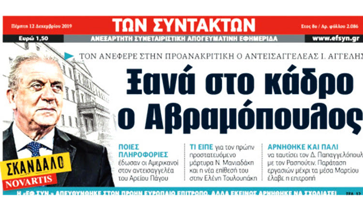 …Τελικά έρχεται με ένταση το όνομα του Αβραμόπουλου ξανά στο προσκήνιο. Ενώπιον της Προανακριτικής ο αντεισαγγελέας του Αρείου Πάγου και πρώην επόπτης και συντονιστής της Εισαγγελίας Διαφθοράς Γιάννης Αγγελής ουσιαστικά… έδωσε τον Αβραμόπουλο.