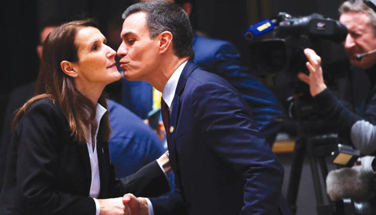 Ο Εμανουέλ Μακρόν όμως δεν ήταν ο μοναδικός διαχυτικός μεταξύ των ηγετών στα τετ α τετ πριν ξεκινήσει η Σύνοδος Κορυφής. Φιλιά μοίρασε και ο Ισπανός πρωθυπουργός, Πέδρο Σάντσεθ, όπως σε αυτό το στιγμιότυπο με τη Βελγίδα Σοφί Βιλμές, μία ακόμη πρωθυπουργό που κάνει ντεμπούτο σε αυτή τη Σύνοδο Κορυφής, αφού ανέλαβε υπηρεσιακά καθήκοντα πριν από λίγες ημέρες. Και η Ανγκελα Μέρκελ συζήτησε για αρκετή ώρα τόσο με τη Σάνα Μαρίν, όσο και με τη Βελγίδα πρωθυπουργό Σοφί Βιλμές.