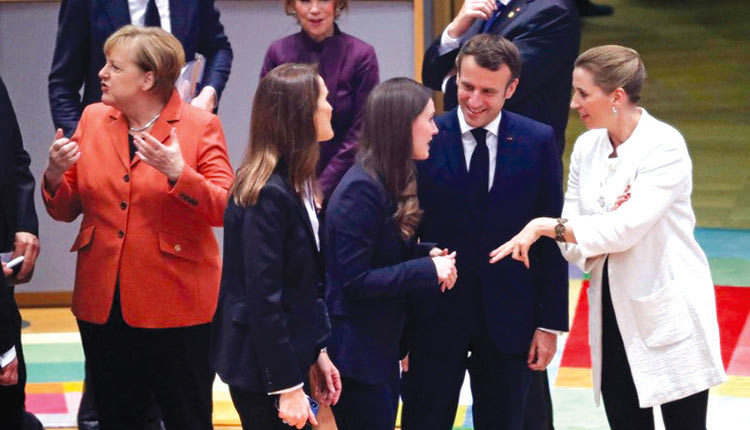 Οι κυρίες έκλεψαν την παράσταση στη Σύνοδο της Κορυφής. Στο επίκεντρο, όπως αναμενόταν, βρέθηκε η Σάνα Μαρίν. Η 34χρονη πρωθυπουργός της Φινλανδίας είναι η νέα «προσθήκη» στη Σύνοδο Κορυφής, καθώς έκανε στις Βρυξέλλες την παρθενική συμμετοχή της, δύο ημέρες μετά την ορκωμοσία της. Ιδιαίτερα «θερμός» ήταν ο Εμανουέλ Μακρόν απέναντί της.