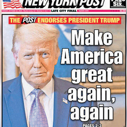 Να που κι ένας στηρίζει τον Τραμπ! H New York Post ανακοίνωσε χθες ότι στηρίζει τον Ντόναλντ Τραμπ και έγινε έτσι η μοναδική μεγάλη αμερικανική εφημερίδα που δήλωσε τη στήριξή της στον πρόεδρο.