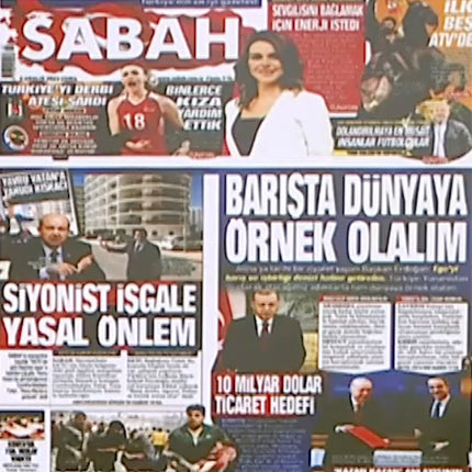 Τη φράση Ερντογάν «για την ειρήνη ας γίνουμε παράδειγμα στον κόσμο» χρησιμοποιεί η Sabah ενώ η Akcam επιλέγει το μήνυμα περί «θάλασσας ειρήνης» στο Αιγαίο.«Τελείωσαν οι εκλογές, ξεκίνησε η περιόδος της θετικής διάθεσης» αναφέρει στο μικρό σε έκταση θέμα που έχει στο πρωτοσέλιδό της η αντιπολιτευόμενη εφημερίδα Cumhuriyet.