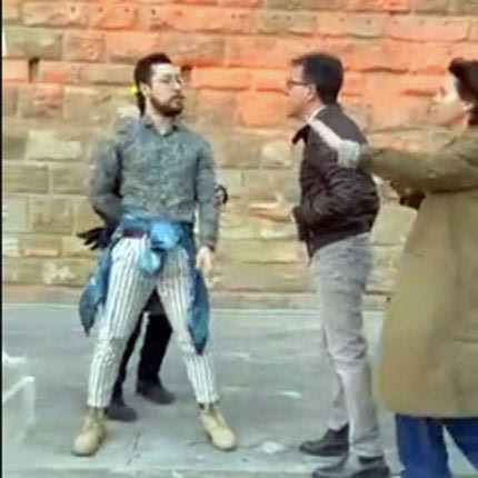 O Dario Nardella, δήμαρχος στη Φλωρεντία από το 2014, εμφανίζεται να τρέχει εξοργισμένος προς το μέρος του ακτιβιστή. Φαίνεται να τον αρπάζει, να τον σπρώχνει και να του φωνάζει τι κάνει.Αναγκάζει τον ακτιβιστή να αφήσει κάτω τη συσκευή ψεκασμού μπογιάς, την οποία είχε προηγουμένως χρησιμοποιήσει στους τοίχους του μεγαλοπρεπούς Palazzo Vecchio, όπου στεγάζεται το δημαρχείο της πόλης.
