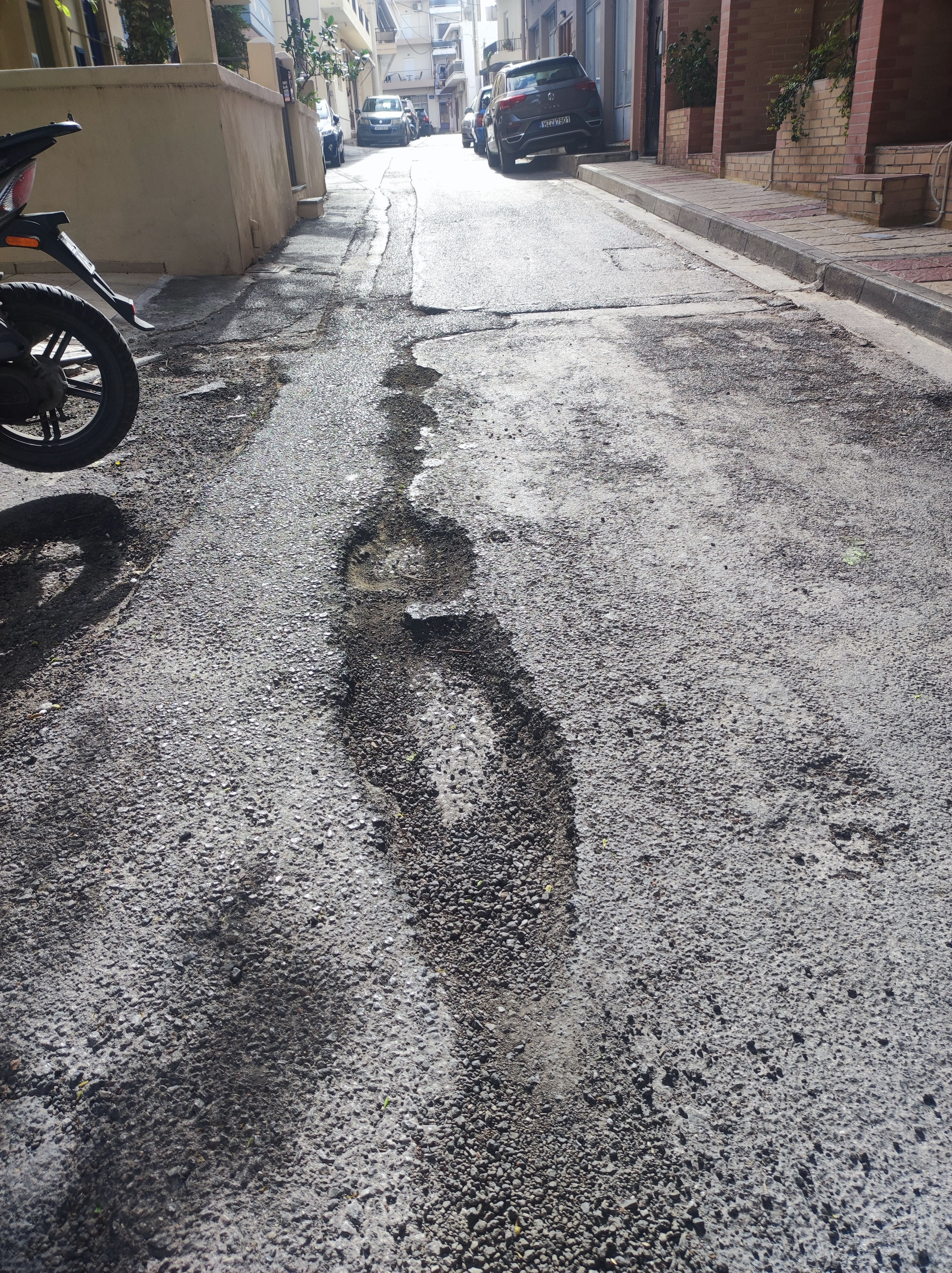 Και για του λόγου το αληθές ιδού στην οδό Ραυτοπούλου, μια λακκούβα ή καλύτερα «σκοτώστρα» που είναι αδιανόητο να περάσει από πάνω της πεζός ή οποιοδήποτε όχημα και να μην πάθει ζημιά.