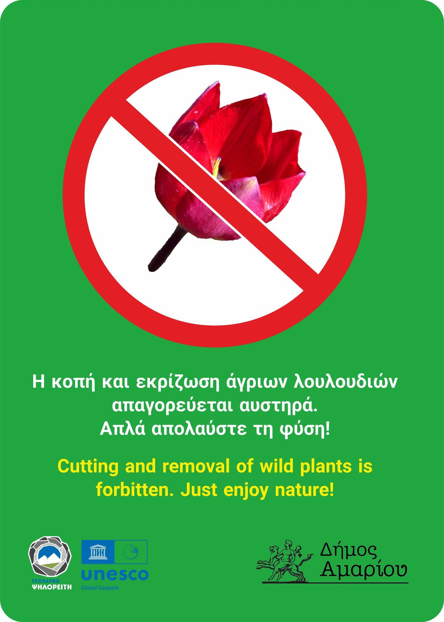 Απαγορεύεται αυστηρά η κοπή και η εκρίζωση των άγριων λουλουδιών, υπενθυμίζει στους περιπατητές με ανακοίνωσή του το Γεωπάρκο Ψηλορείτη που ενθαρρύνει τους εκδρομείς να απολαύσουν τη φύση και τις ομορφιές της, αποφεύγοντας όμως να προκαλούν καταστροφές.