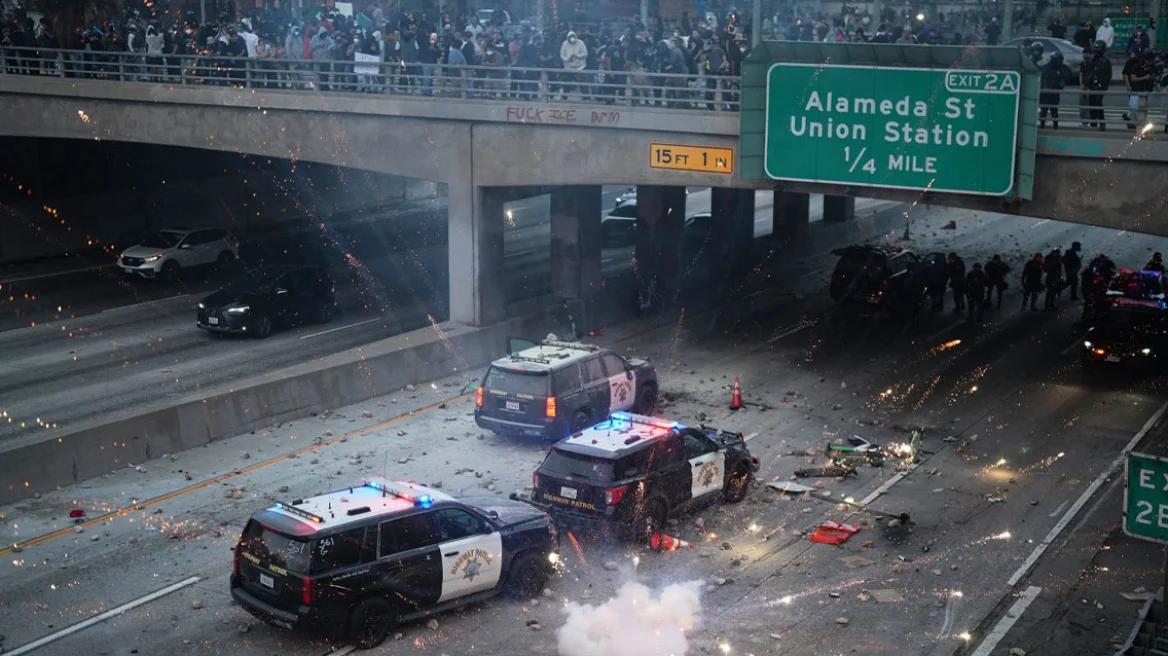 Έκρυθμη παραμένει η κατάσταση στους δρόμους του Λος Άντζελες, μετά από τέσσερις ημέρες ταραχών κατά των μαζικών συλλήψεων παράτυπων μεταναστών από την Κυβέρνηση του Ντόναλντ Τραμπ. Οι διαμαρτυρίες συνεχίζονται στους δρόμους, παρά τα χημικά και τις πλαστικές σφαίρες που έριξε η Εθνοφρουρά, κι ενώ περίπου 500 πεζοναύτες βρίσκονται σε ετοιμότητα για να επέμβουν.