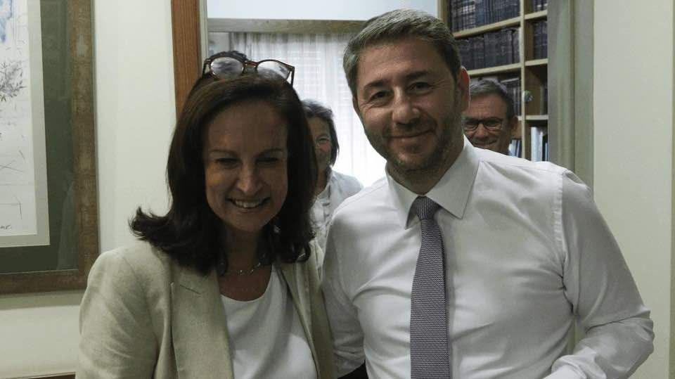 Μπορεί να μην είναι στο πρώτο πλάνο της φωτογραφίας αλλά το χαμόγελο της είναι δηλωτικό… Ο λόγος για την Ευαγγέλια Σχοιναράκη, που διακρίνεται να χαμογελά πίσω από τους Νίκο Ανδρουλάκη και Άννα Διαμαντοπούλου, στο γραφείο της οποίας μετέβη προχθές ο εκ των φιναλίστ του β’ γύρου για την προεδρία στο ΠΑΣΟΚ.