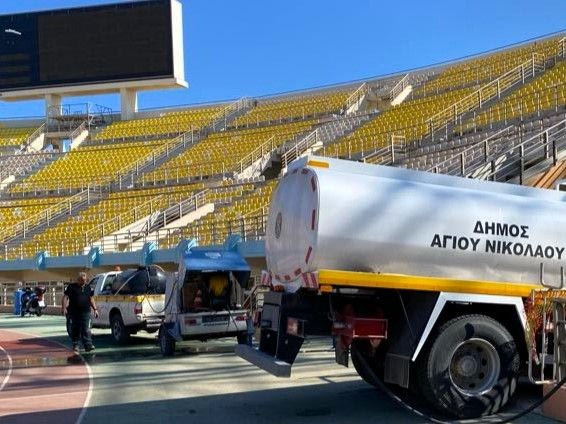 «Με δανεικούς»… μέχρι και από το Δήμο Αγίου Νικολάου (!) καθαρίστηκε το Παγκρήτιο Στάδιο μετά το κάζο της προηγούμενης αναμέτρησης της Εθνικής με την Σλοβακία, όπου 20 χιλιάδες φίλαθλοι έφυγαν από τον αγώνα με λασπωμένα ρούχα από τα καθίσματα, που είχαν πάνω τους στρώσεις σκόνης και λάσπης, γεγονός που προκάλεσε την οργή και αγανάκτηση της κοινωνίας. Πόσο διαφορετικά θα ήταν τα πράγματα αν τα αντανακλαστικά ήταν καλύτερα και το αυτονόητο δεν θα ήταν ζητούμενο… αλλά δεδομένο.