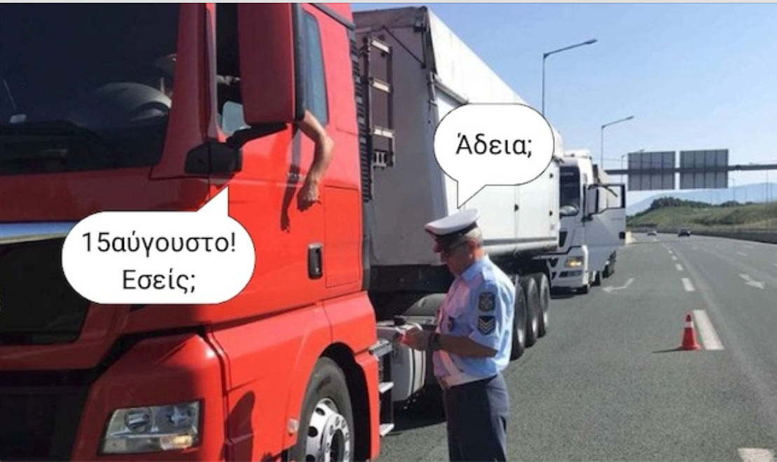 Με μια χιουμοριστική ανάρτηση η Ελληνική Αστυνομία κάνει αναφορά στις διακοπές, εφιστώντας την προσοχή στους αδειούχους του καλοκαιριού. Στη φωτογραφία φαίνεται ο έλεγχος που γίνεται σε νταλίκα, με τον αστυνομικό να ρωτάει «άδεια;» και τον οδηγό να απαντά «15αύγουστο. Εσείς;». Η ανάρτηση επίσης παραπέμπει και σε ένα link με χρήσιμες συμβουλές για το καλοκαίρι. Συμβουλές που έχουν να κάνουν με το πώς αφήνουμε το σπίτι φεύγοντας για διακοπές, πώς συμπεριφερόμαστε. Στο ταξίδι, τι κάνουμε στη διαμονή μας, τι προσέχουμε στην παραλία, από πού φυλαγόμαστε στη διασκέδαση κοκ.