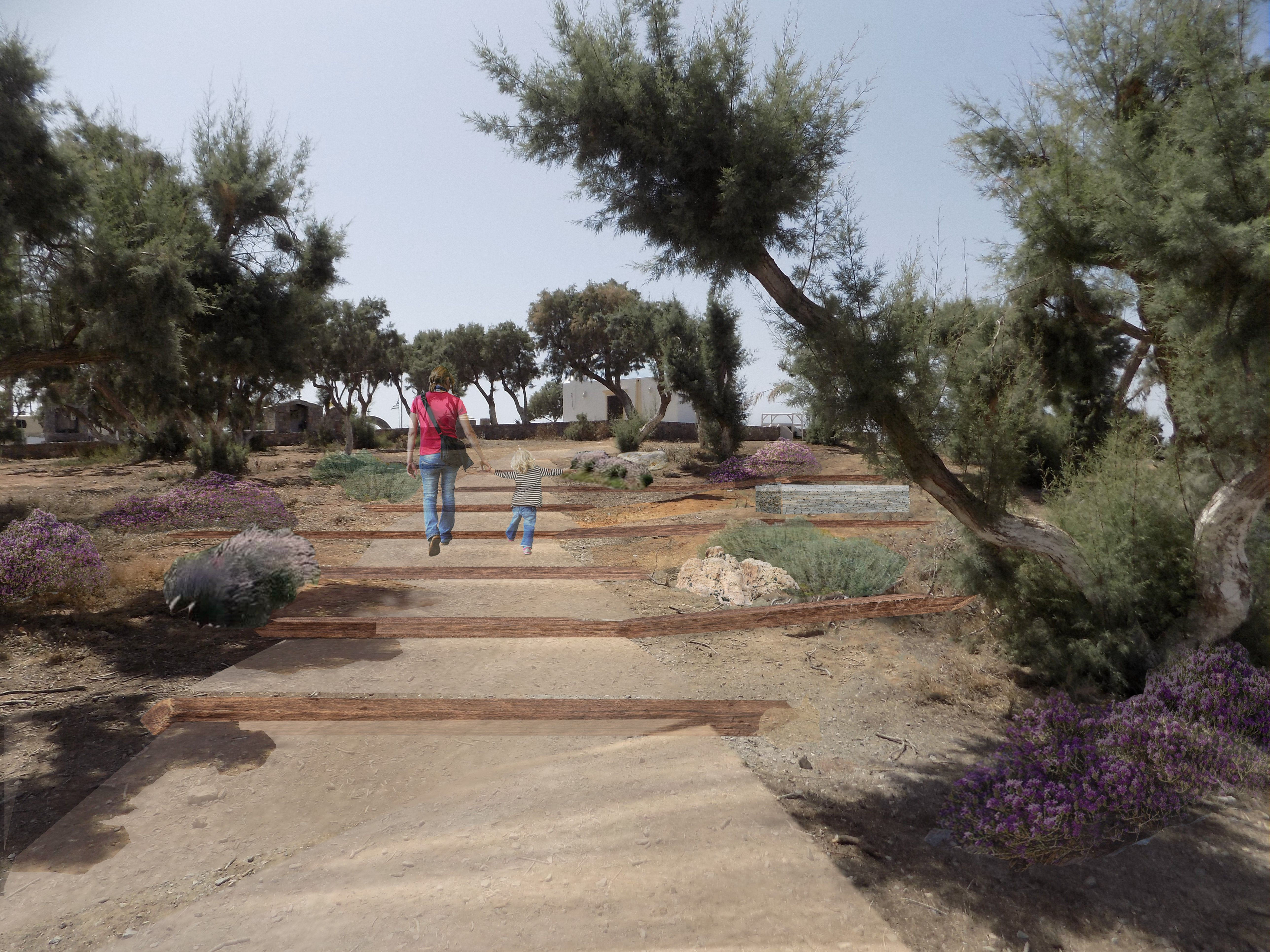 Στην ανάπλαση του χώρου προβλέπεται επίσης δημιουργία μονοπατιών τα οποία θα διαπερνούν το σύνολο του χώρου από την δυτική είσοδο.