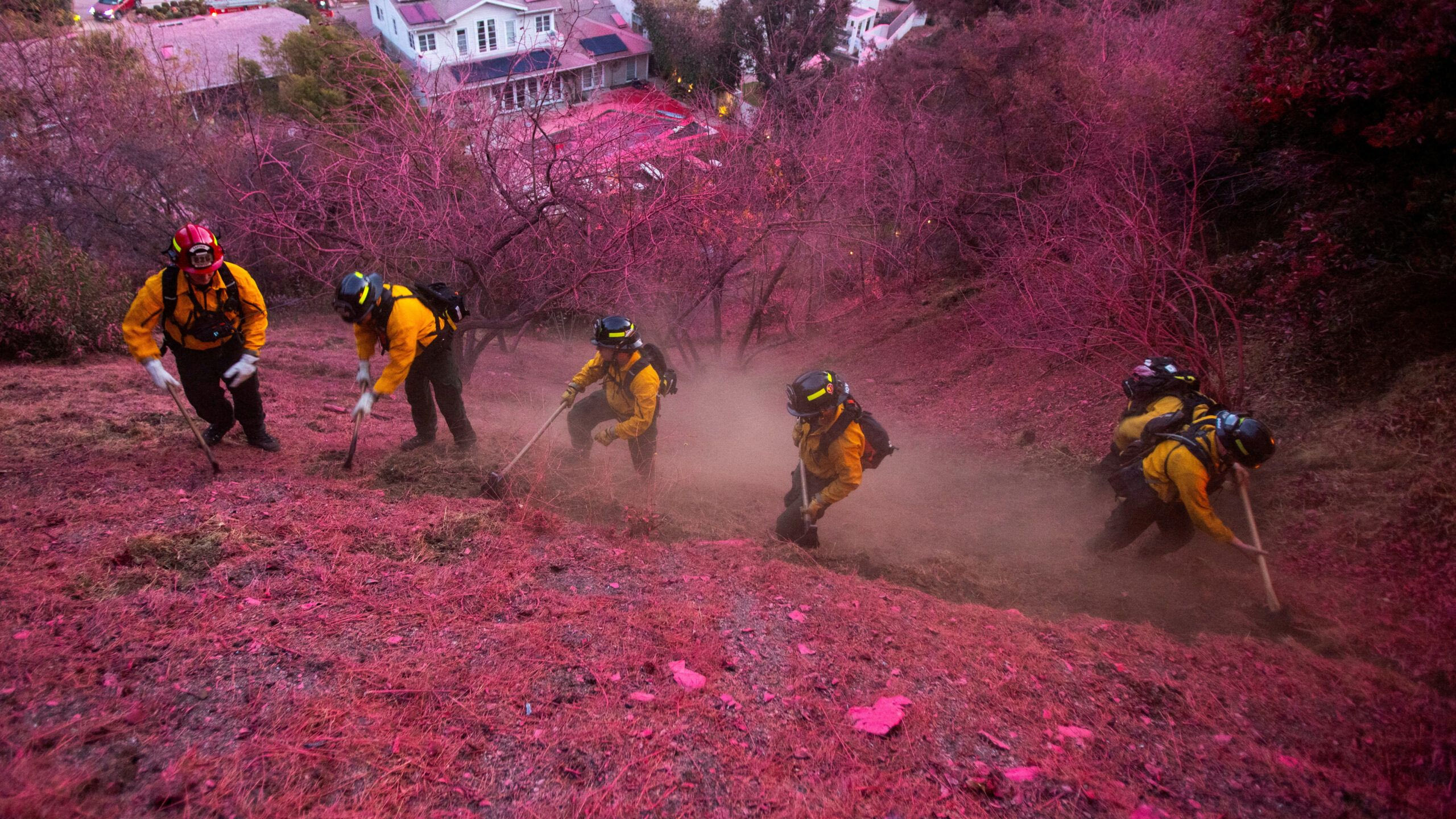 Ένα ροζ πέπλο σκέπασε το πυρόπληκτο και βαθιά πληγωμένο σε ανθρώπινες απώλειες και υλικές καταστροφές, Λος Άντζελες. Καθώς τα συνεργεία πυρόσβεσης συνεχίζουν να μάχονται ενάντια στις καταστροφικές πυρκαγιές στη Νότια Καλιφόρνια, εντυπωσιακές εικόνες κάνουν τον γύρο του κόσμου με αεροσκάφη να απελευθερώνουν ένα έντονα κόκκινο και ροζ υλικό πάνω από τα προάστια του Λος Άντζελες.