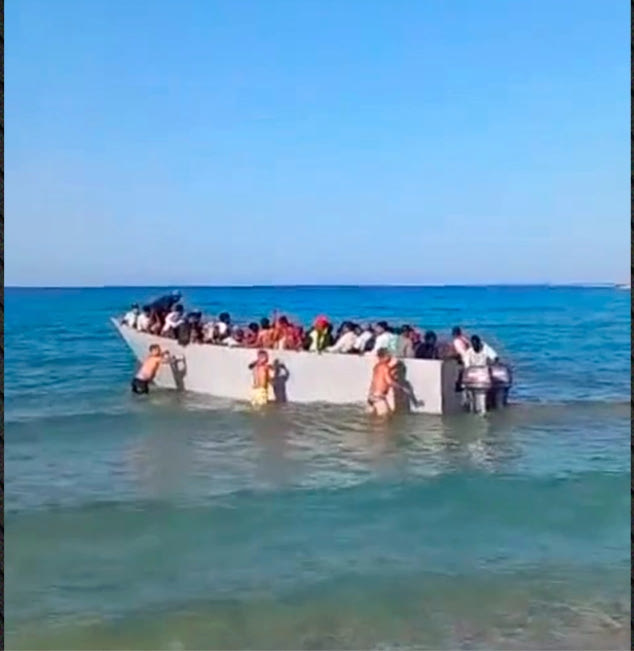 Όπως φαίνεται σε βίντεο που αναρτήθηκε στο TikTok, η βάρκα έφτασε στην παραλία, στη βόρεια πλευρά του νησιού, την ώρα που υπήρχε κόσμος και μάλιστα καταγράφονται λουόμενοι να μπαίνουν στο νερό και με τα χέρια τους να σπρώχνουν προς τα ανοιχτά τη γεμάτη βάρκα που επιχείρησε να προσεγγίσει την ξηρά.