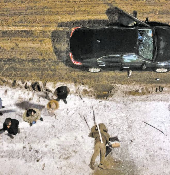 Σε φωτογραφίες που αναρτήθηκαν σε κανάλια του ρωσικού Telegram εικονίζεται η είσοδος ενός κτηρίου που έχει υποστεί σοβαρές ζημιές και δύο πτώματα να κείτονται στο χιόνι.