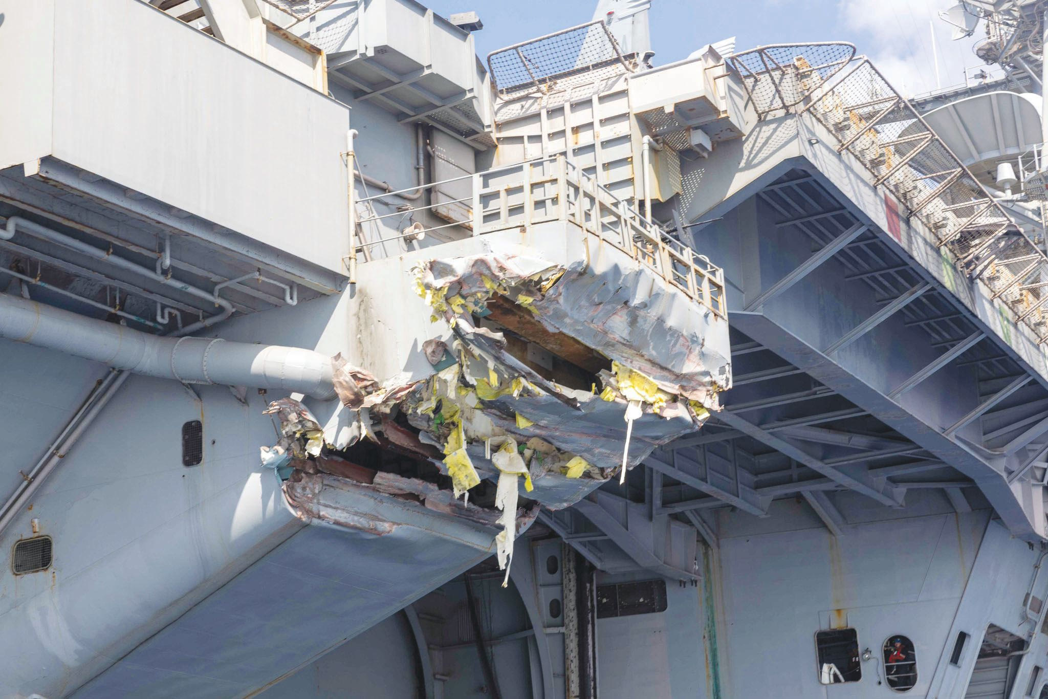 Εκτός από το εσωτερικό του πλοίου, υπήρξαν και εξωτερικές ζημιές σε έναν χώρο χειρισμού σχοινιών, την πρύμνη και την πλατφόρμα πάνω από έναν από τους αποθηκευτικούς χώρους.