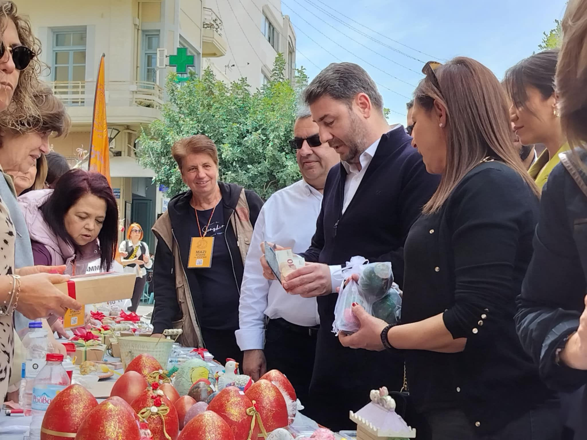Έξω από την Λότζια ο Νίκος Ανδρουλάκης… έπεσε πάνω στο πασχαλινό παζάρι του Συνδέσμου Γυναικείων Σωματείων του Ηρακλείου. Δεν ευχήθηκε μόνο, αλλά θέλησε να αγοράσει από το παζάρι. Τι άλλο… από πασχαλινά αυγά; Μόνο που ο πρόεδρος εξέφρασε την επιθυμία να είναι πράσινα! Οι γυναίκες του παζαριού έψαξαν ανάμεσα στα πολλά πασχαλινά είδη και βρήκαν τρία πράσινα αυγά, τα οποία με ευχαρίστηση αγόρασε ο πρόεδρος. Το κέντρο είχε πολύ κόσμο και τα café ήταν γεμάτα, οπότε ο Νίκος Ανδρουλάκης μοίρασε ευχές και χαμόγελα, πριν και ο ίδιος με την συνοδεία του καθίσουν για το δικό τους καφέ. Όχι και εύκολο, λόγω του συνωστισμού θαμώνων… Τελικά, κάθισαν στο News Cafe, ευελπιστώντας ότι έρχονται καλά νέα για το ΠΑΣΟΚ.