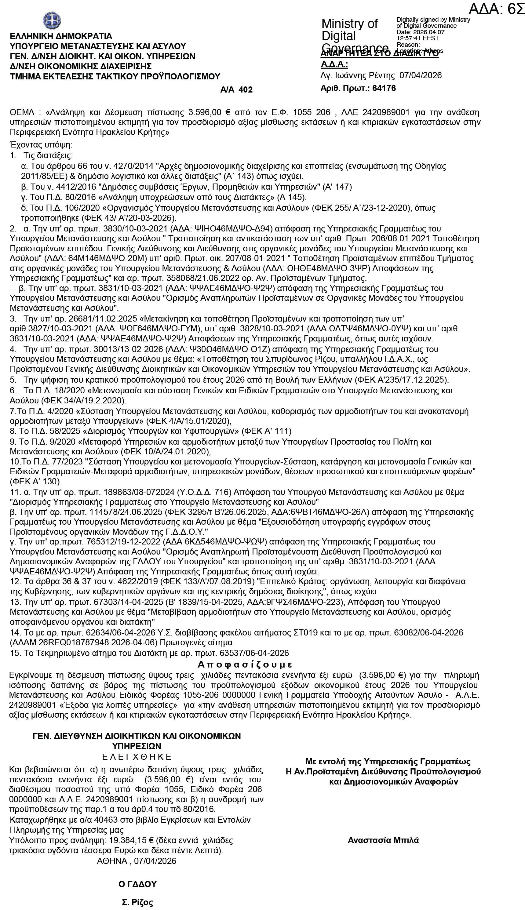 Ερώτημα αποτελεί η αναφορά στη στέγαση της Περιφερειακής Υπηρεσίας Υποδοχής και Ταυτοποίησης, ως προς το αν θα διαχειρίζεται τις αφίξεις σε όλη την Κρήτη ή αν θα δημιουργηθεί άλλη μια στη δομή του Ηρακλείου, όταν και όποτε αυτή δημιουργηθεί.