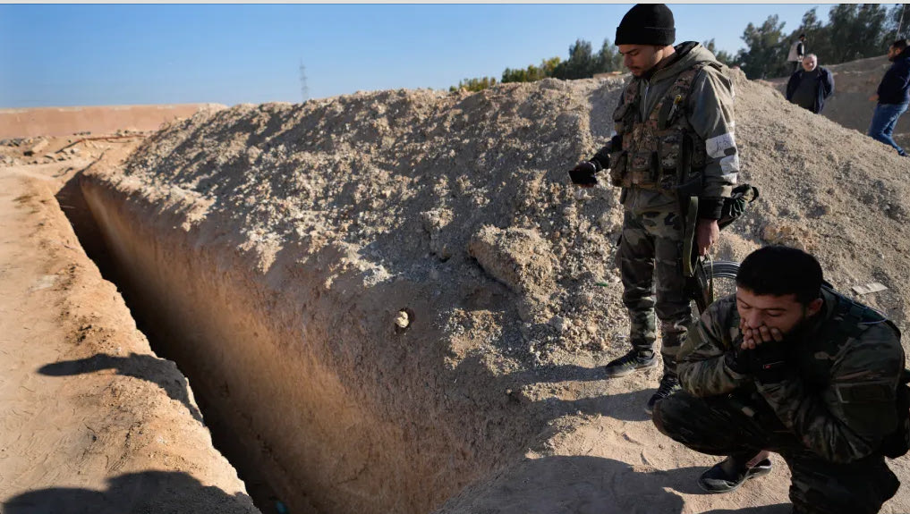 Η περιοχή στην αλ-Κουτάιφα, που βρίσκεται 40 χιλιόμετρα βόρεια της πρωτεύουσας, ήταν ένας από τους πολλούς μαζικούς τάφους, που εντοπίστηκαν σε ολόκληρη τη χώρα, μετά την κατάρρευση του Άσαντ από την «επιχείρηση αστραπή» των τζιχαντιστών – ανταρτών.
