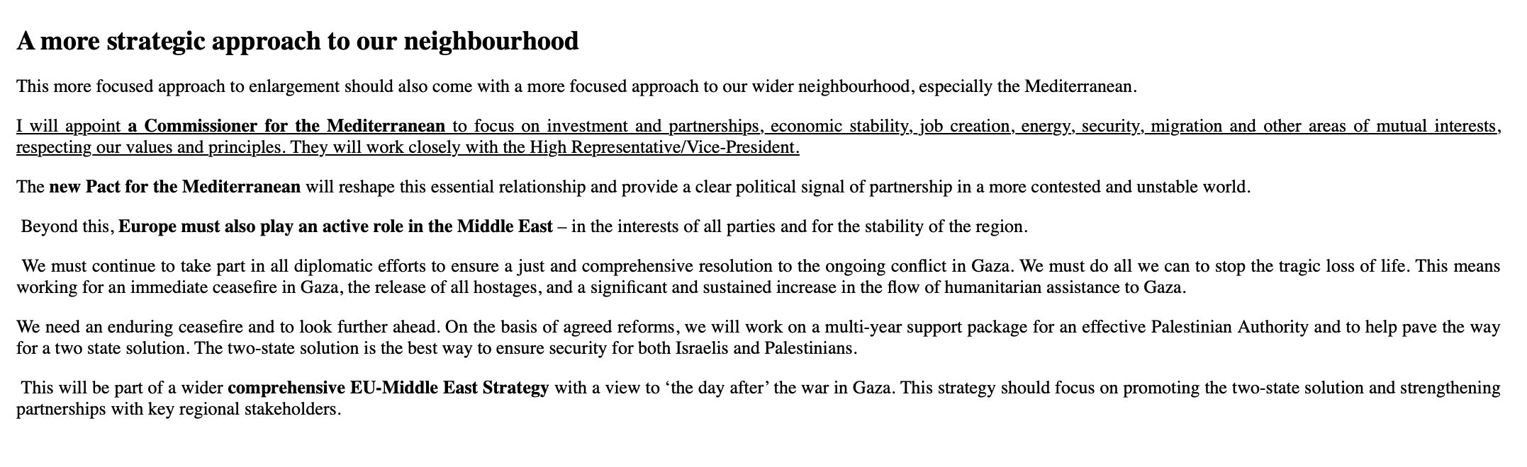 Ομολογώ ότι δεν το είχα δει, μου το επεσήμανε καλός φίλος της στήλης: Στην ομιλία της η Ούρσουλα Φον Ντερ Λαιεν, ως υποψήφια για την επόμενη Ευρωπαϊκή Επιτροπή 2024-2029, εξήγγειλε ότι θα ορίσει και επίτροπο για τη Μεσόγειο, για την ενίσχυση της συνεργασίας με χώρες Μεσογείου, με έμφαση και σε επενδύσεις, δημιουργία θέσεων εργασίας, ενέργεια, ασφάλεια κλπ. Ως Κρήτη βέβαια μας ενδιαφέρει. Αυτό που λέμε δεκαετίες… κέντρο ανατολικής Μεσογείου κλπ κλπ. Καλό είναι, αρκεί να μην καταλήξει σε… Club Méditerranée.