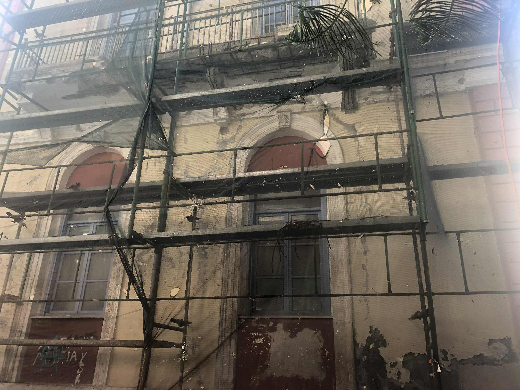 Συν τοις άλλοις, όπως καταγγέλλουν, λειτουργεί και ως εστία μόλυνσης, με τρωκτικά και σκουπίδια να εγκλωβίζονται ανάμεσα στις λινάτσες και τις σκαλωσιές. Οι κάτοικοι απευθύνονται στον Δήμο, ο Δήμος, όπως υποστηρίζουν, τους λέει ότι το Μουσείο δεν τους αφήνει να επέμβουν, αν και πρωτίστως πρέπει να ενδιαφερθεί και ο ιδιοκτήτης. Ο κίνδυνος είναι μεγάλος και τα διερχόμενα οχήματα πολλά…