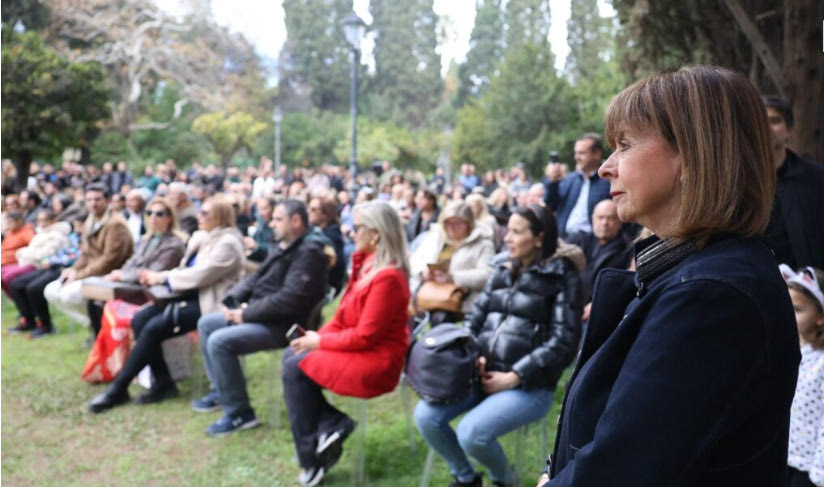 Καθ’ όλη τη διάρκεια της εκδήλωση η κυρία Σακελλαροπούλου συνομιλούσε συνεχώς και αντάλλασσε ευχές με τους παριστάμενους μικρούς και μεγάλους για χαρούμενα Χριστούγεννα και μια καλή νέα χρονιά.