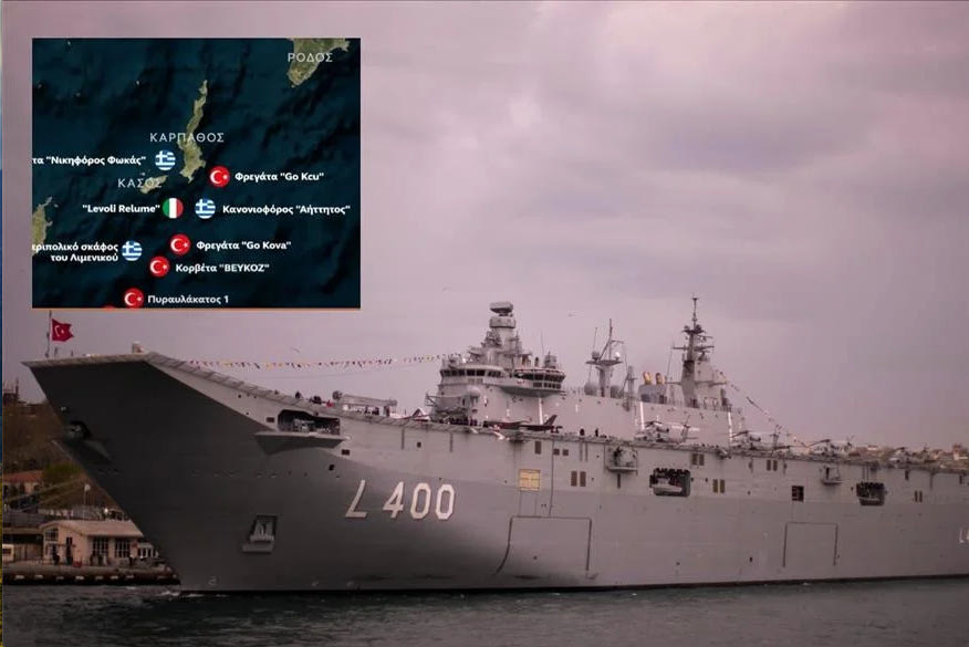 Η Τουρκία ανέπτυξε πέντε πολεμικά πλοία σε περιοχή λίγο έξω από την αιγιαλίτιδα ζώνη, με πρόσχημα την παραβίαση της τουρκικής υφαλοκρηπίδας, καθώς στην περιοχή πλέει ιταλικό πλοίο ερευνών για την εγκατάσταση υποβρυχίων καλωδίων.