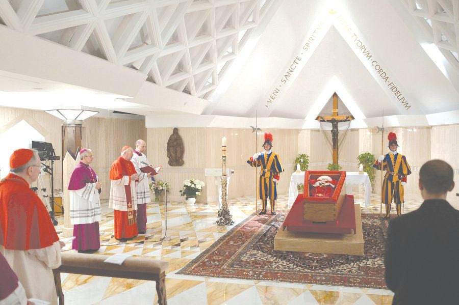 Χθες η σορός μεταφέρθηκε στη βασιλική εκκλησία του Αγίου Πέτρου. Το Σάββατο, αμέσως μετά την ολοκλήρωση της κηδείας, η σορός του Αργεντινού ποντίφικα πρόκειται να ενταφιαστεί στην εκκλησία Σάντα Μαρία Ματζιόρε, κοντά στον κεντρικό σιδηροδρομικό σταθμό της Ρώμης, σύμφωνα με την επιθυμία που εξέφρασε ο ίδιος ο «Πάπας των φτωχών», με τη διαθήκη του.