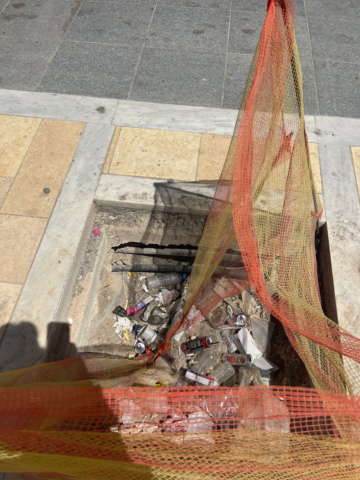 Οι εικόνες από το πιο πολυσύχναστο μέρος της πόλης είναι τουλάχιστον απαράδεκτες. Μπροστά από τον κινηματογράφο ΑΣΤΟΡΙΑ, βλέπουμε άδειες τρύπες είτε με αυτοφυή φυτά είτε γεμάτες σκουπίδια, περιφραγμένες με σκουριασμένα σίδερα και πλαστικά δίχτυα, που έχουν φύγει από την θέση τους και είναι έτοιμα να προκαλέσουν τραυματισμούς. Βλέπουμε ξεχασμένα υλικά από τον χειμώνα, ξηλωμένη άσφαλτο από λάθη μηχανικών του Δήμου και φυσικά πολλά σκουπίδια παντού!