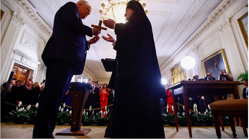 Ο Αμερικανός πρόεδρος Ντόναλντ Τραμπ συμμετείχε σε εκδήλωση στον Λευκό Οίκο για την Ημέρα της Ελληνικής Ανεξαρτησίας, υπό την παρουσία ομογενειακών οργανώσεων και εκκλησιαστικών αξιωματούχων (όπως φαίνεται και στη φωτογραφία του Kevin Lamarque από το Reuters).