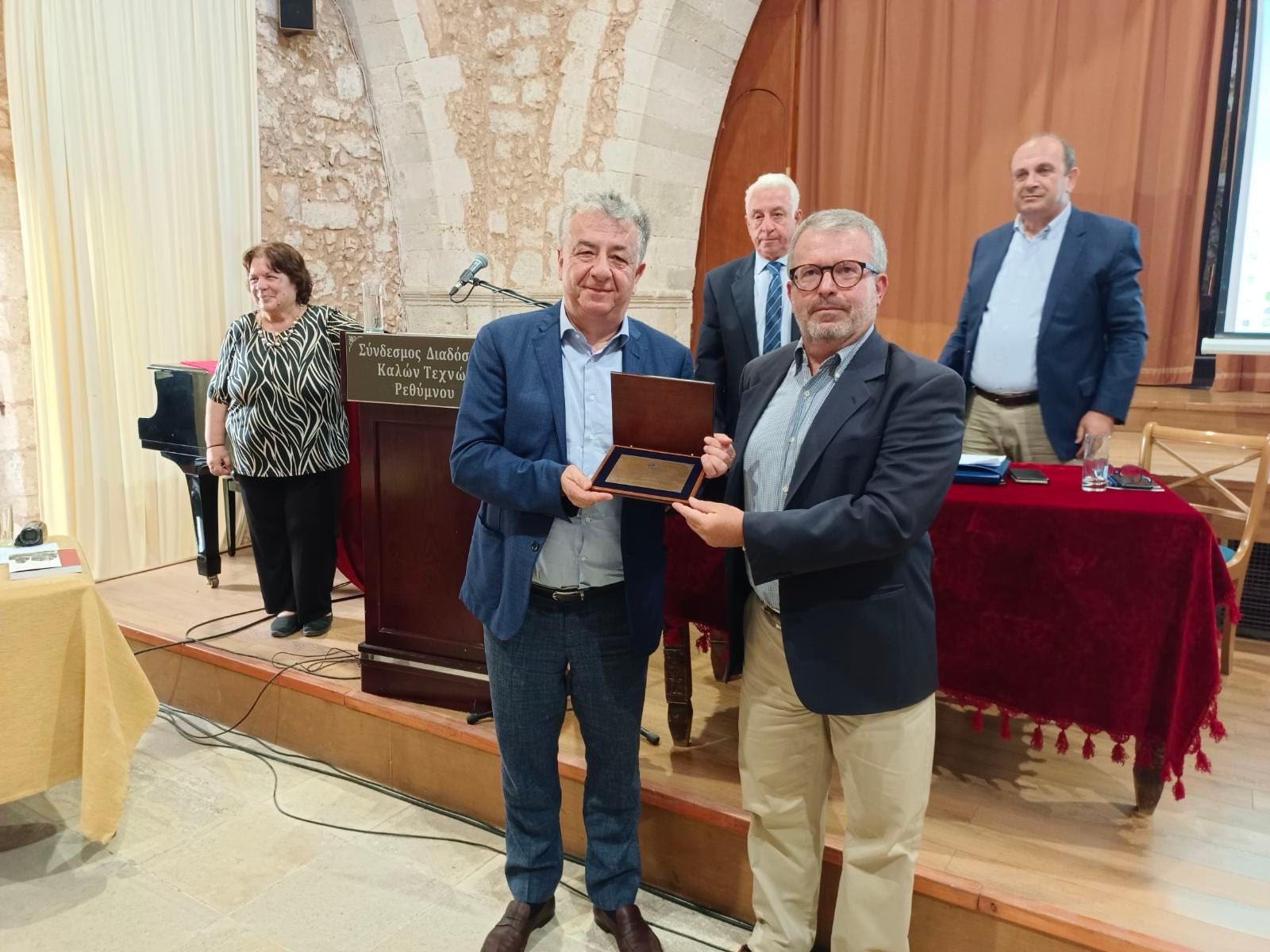 Την πλακέτα απένειμε στον κ. Αρναουτάκη ο αντιπρόεδρος της ΕΣΗΕΠΗΝ και επικεφαλής του αθλητικού τμήματος της «Π», Αντώνης Παπουτσάκης. Η ΕΣΗΕΠΗΝ τίμησε και το μέλος της Εύα Λαδιά, ψυχή της οργανωτικής επιτροπής της συνεδρίου. Ο κ. Αρναουτάκης συνεχάρη την ΕΣΗΕΠΗΝ και τόνισε ότι τέτοιες διοργανώσεις και συνέδρια λειτουργούν ως θεματοφύλακες της ιστορικής μνήμης της Κρήτης.