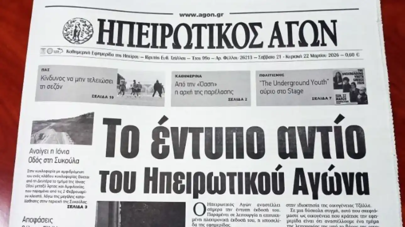 Δεν άντεξε η εφημερίδα των Ιωαννίνων, που για 102 χρόνια κυκλοφορούσε αδιάλειπτα, ήταν ιδρυτής του ΣΕΠΕ και αποχαιρέτησε με το τελευταίο της πρωτοσέλιδο με τίτλο: «Έντυπο αντίο του Ηπειρωτικού Αγώνα». Οι εποχές αλλάζουν, οι ανάγκες αλλάζουν και οι παραδοσιακοί τρόποι ενημέρωσης παραμερίζονται. Όμως, την αξιοπιστία του χαρτιού δεν μπορεί να την υποσκελίσει το ίντερνετ, εξαιτίας κυρίως των social media!